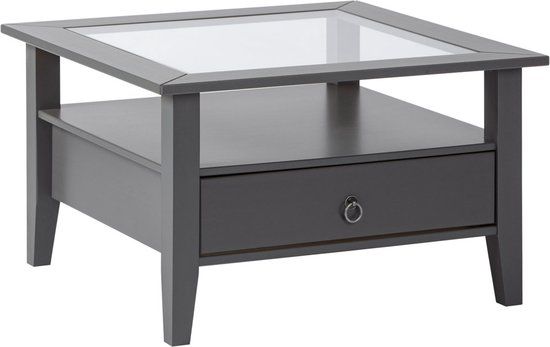 Interlink SAS Interlink Salontafel - Massief grenen met glasplaat - Grijs gelakt - 2023 model - Salontafels