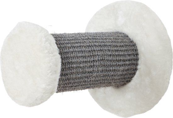 - with plush cover and sisal scratching surface\n- also suitable for supplementing existing scratching furniture\n- rear side covered with plush\n- colour: white/grey