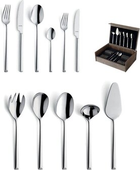 Deze bestekset Ventura van het merk Amefa is van hoogwaardige kwaliteit met zijn sterke, tijdloze en elegante uitstraling past deze set perfect bij een moderne tafelschikking. Het bestek is gemaakt van 18/10 roestvrij staal en heeft een matte afwerking. Bovendien is het vaatwasmachinebestendig en daarom zeer gemakkelijk te onderhouden.