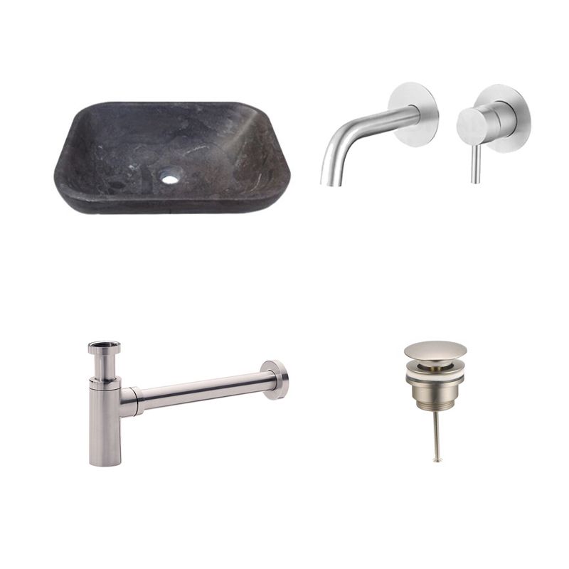 Badkamerplanet Natuurstenen Waskomset Sub RVS Inbouwkraan 45x35x12 cm - Bidetkranen