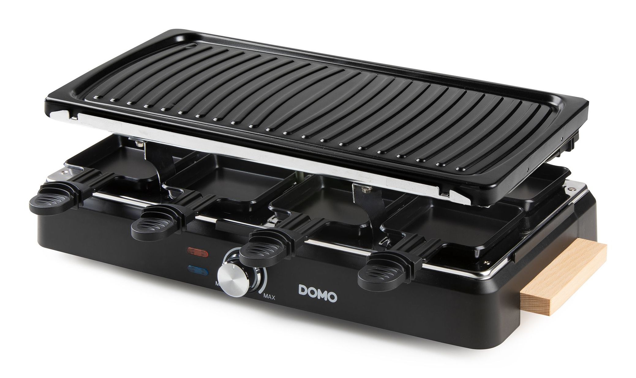 De DOMO Steengrill-Grill-Raclette DO9262G brengt de authentieke smaak van een natuursteengrill samen met het gebruiksgemak van een metalen PFAS-vrije antiaanbak grillplaat. Dankzij zijn dubbel roestvrijstalen verwarmingselement is het toestel groot genoeg voor 8 personen en compact genoeg voor op tafel. Bovendien houden de antislipvoetjes het toestel goed op zijn plaats. Zin in raclette? Ook dat kan! Geniet van smeuïge raclette-kaas, gestoofde ui of een spiegeleitje… Dankzij de 8 raclettepannetjes (met PFAS-vrije antikleeflaag) en houten spatels die worden meegeleverd maakt iedereen zijn eigen gerecht. Een heerlijk avondje met familie of vrienden moet niet veel werk zijn: steek de stekker in, draai aan de knop, en begin met bakken!