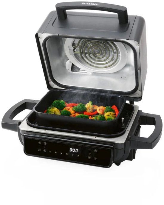 Bekijk productSilvercrest Kitchen Tools Silvercrest Heteluchtfriteuse met grill en rookfunctie - 3,8 L - Zwart - Deksels voor frituurpannen