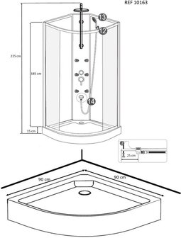 Wiesbaden Jupiter Douchecabine - 90x90x225cm - Compleet met Douchekolom en Zwarte Achterpanelen - Douchepanelen