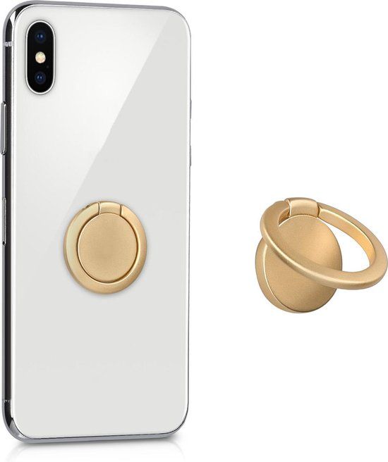 kwmobile ringhouder voor smartphone - Vingergreep - Zelfklevende ronde ring - Telefoonstandaard - Goud