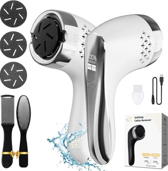 Oplaadbaar en duurzaam: Gebruik de meegeleverde standaardkabel voor veilig opladen. Twee snelheidsstanden: Pas de snelheid aan op jouw huidtype en eelt. Inclusief extra's: Wordt geleverd met 2 extra eeltvijlen en een reinigingsborsteltje. 3 schuurpads voo