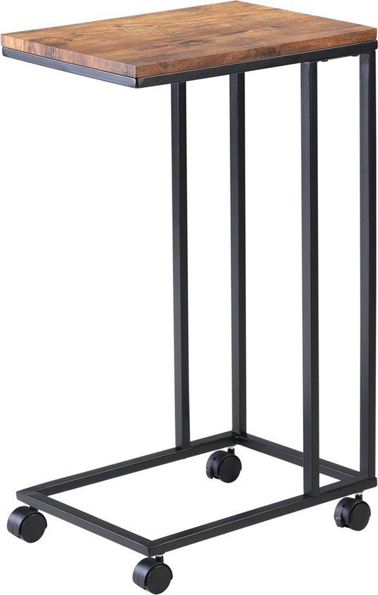 Functionele en moderne bijzettafel met wieltjes in industriele hout-look!