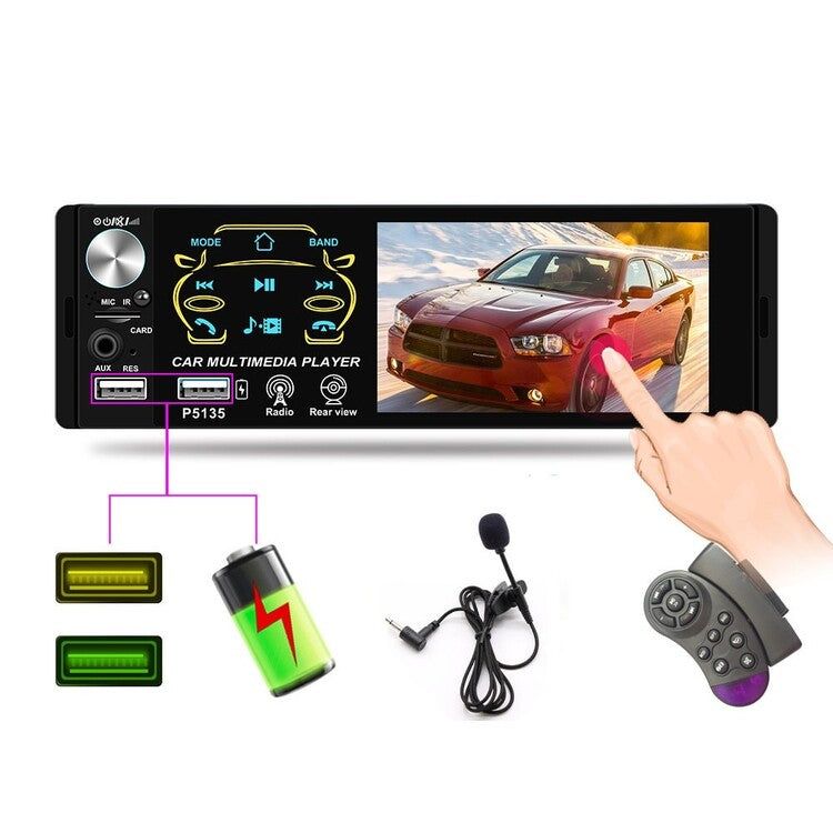 De TechU™ T-series zijn momenteel de beste autoradio's op de markt. Geniet van uw autorit met uw favoriete muziek!Aansluiting:De autoradio is gemakkelijk aan te sluiten dankzij de standaard maat. Er worden stekkers meegeleverd die u handmatig kunt doorverbinden met de huidige installatie in uw auto. Daarnaast is er ook 2 USB en 1 AUX aansluiting aan de voorzijde en 1 USB aansluiting aan de achterzijde. Aan de achterzijde zitten verschillende audio en video aansluitingen: achteruitrijcamera, subwoofer, video input/output, externe microfoon (meegeleverd), antenne, links en rechts audio input, links en rechts audio output en stroomkabel. Media PlayerHet ultieme 1 Din 4.1 inch HD touchscreen scherm zorgt voor optimaal plezier van de radio in de auto. Speel uw favoriete nummers af via Bluetooth, MP3, MP4, AUX, SD of USB of luister naar de radio. Ook kunt u zelfs HD videos bekijken via de radio als uw telefoon is