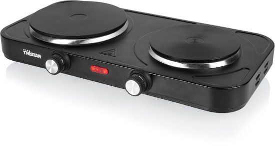Dubbele brander: Deze plaat met dubbele brander is ideaal voor kleine keukens, studentenflats of als achterplaat. Met zijn branders van 15,5 en 18,5 cm diameter is hij geschikt voor zowel kleine als grote potten. Instelbare thermostaten: met de 2 knoppen