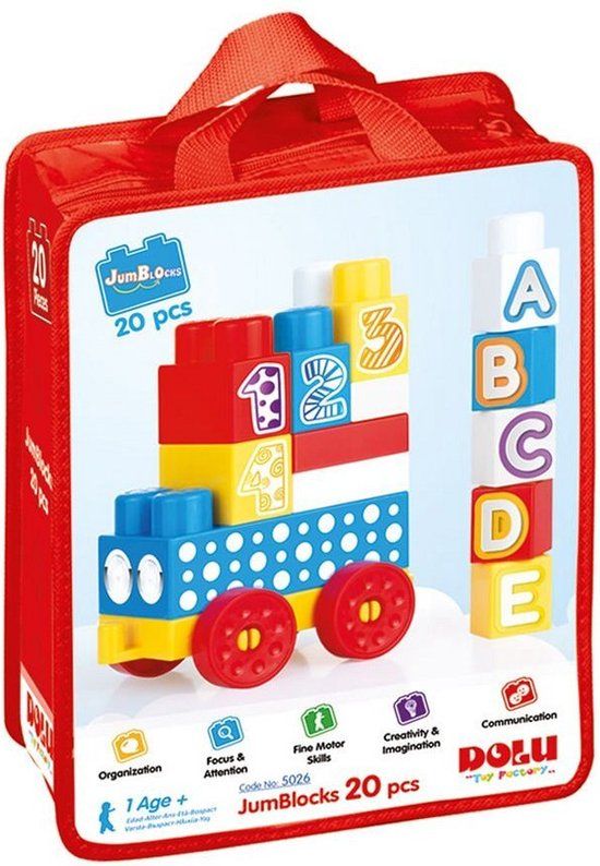 Dolu blokkentrein met 20 blokken. Geschikt voor kinderen vanaf 1 jaar.