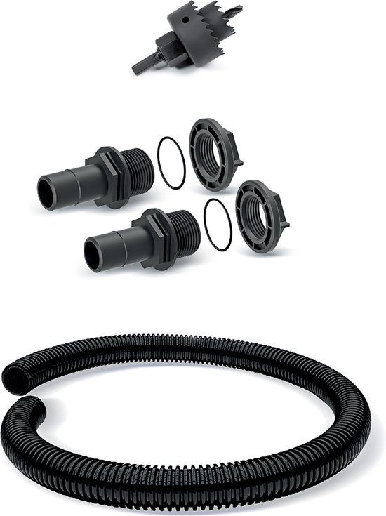 Met deze set kun je meerdere tonnen aan elkaar koppelen. Hiervoor gebruik je het liefst de ‘winterplug’ aan de onderzijde van de tonnen.