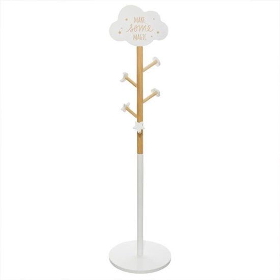 De Nuage staande kapstok is een leuke kinderkamer kapstok gemaakt van MDF. De staande kapstok heeft leuke vormen, zo heeft de kapstok een grote wolk bovenaan en de haken hebben de vorm van een ster, een maan of een wolk. De kinderkapstok is uitgerust met 5 haken. Afmetingen 35 x 35 x 135,5 cm