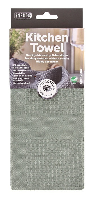 Smart Microfiber System Kitchen Towel Groen van sterk absorberende microvezel geeft een mooie glans aan glas, porselein en zilverwerk. Het laat oppervlakken schitteren en is perfect te gebruiken voor het schoonmaken van keukenkastjes, roestvrij staal en nog veel meer. Voorzien van het Nordic Swan Eco-label.Smart Microfiber System Kitchen Towel Groen:Droogt en poetst snel vaatwerkVoor glanzende oppervlakken, laat geen strepen achterFormaat 60x40 cm, kleur groenJaquard wafel microvezelNordic Swan Eco-labelSterk absorberendHoe te gebruiken?Gebruik de doek droog om af te de vaat en ondergronden droog te maken. Na gebruik kan de keukendoek op 40 graden gewassen worden en hij is droger bestendig.