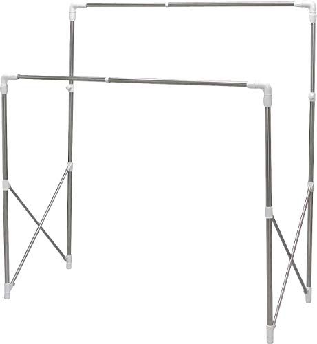 Multifunctioneel: telescopisch kledingrek of droger met een maximale capaciteit van 20 kg (d.w.z. 10 kg op elke bar) Verstelbaar: je kunt de breedte (van 97 tot 150 cm) en de openingshoogte (van 122 tot 160 cm) aanpassen aan de te hangen kleding, terwijl je geniet van perfecte stabiliteit. ROBUUST MATERIAAL in roestvrij staal behandeld tegen corrosie en roest met polypropyleen verbindingen zodat u uw wasgoed kunt drogen zonder risico op verslechtering GEOPTIMALISEERDE OPSLAG: vouwt weg met een eenvoudig gebaar zodat het tijdens opslag zeer weinig ruimte inneemt Eenvoudige montage en verwijdering: zonder gereedschap nodig. Afmetingen: 97/150 x 66 x 122/160 cm