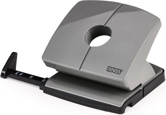 - Hoogwaardige kantoorperforator voor professioneel gebruik veilig vastklikbare aanslagrail met goed afleesbare formaatweergave Folio, DIN A4, US, B5, DIN A5, B6, DIN A6, 3x8 slipvaste vloer, die voor het legen half kan worden geopend en eenvoudig weer kan worden afgesloten.