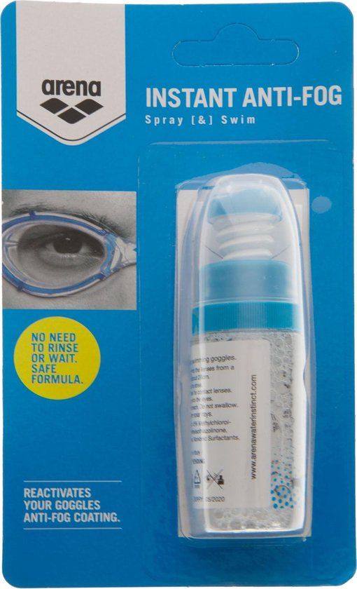 Instant anti-fog. Spray and swim.\n\n- Reactivates your goggles anti-fog coating\n- Quicker, more effective and practical than the traditional anti-fog sprays. New revolutionary formula that delivers an extraordinary clarity of vision\n- Spray onto the lenses from a distance of about 20 cm\n- No need to rinse or wait\n- Safe formula\n- Made in Italy
