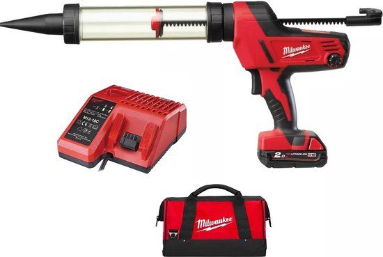 1 stuks Milwaukee C18 PCG/400T-201B Kit-/lijmpistool M18™ Heavy Duty 1 stuks 400ml transparante patroonhouder 1 stuks Milwaukee M18 B2 2,0Ah accu 1 stuks Milwaukee M12-18 C Multilader 1 stuks Milwaukee Transporttas