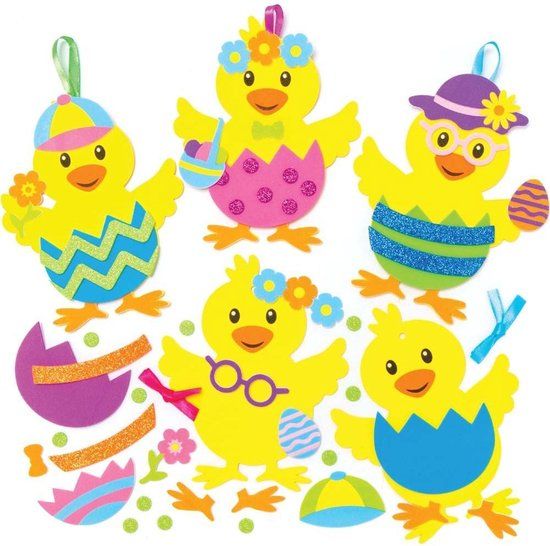 Baker Ross Paas Kip Mix&Match Decoraties - Pakket Van 8