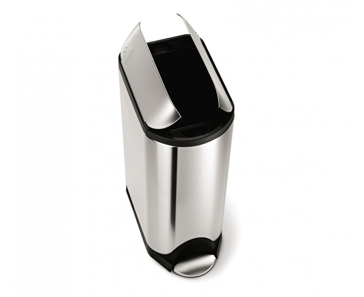 Our butterfly step can has an innovative butterfly lid design that opens from the center for maximum clearance under low countertops. The slim, space-efficient shape makes the most of tight spaces. The strong steel pedal and patented lid shox technology ensure the can will function smoothly and quietly for years.
