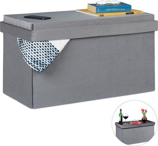 Merkloos Relaxdays Fluwelen bank met opbergruimte, grijs - Opbergbanken met laden