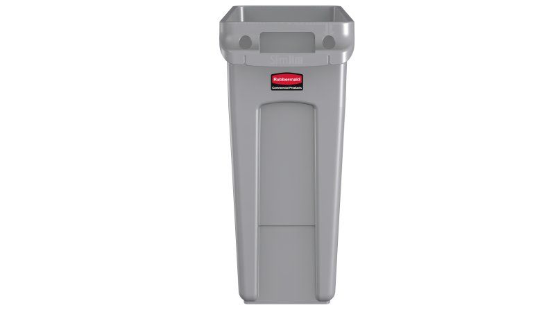 The Rubbermaid Commercial Slim Jim® containers with venting channels offer uncompromised performance in constrained spaces.\n\nVENTING CHANNELS\nMake removing liners 80% easier, improving productivity and reducing the risk of worker injury.\n\nBAG CINCHES\nSecure liners around the rim of the container and allow for quick, knot-free liner changes.\n\nBASE AND RIM HANDLES\nImprove grip and control while lifting and emptying full containers.\n\nRIM WITH RIB-STRENGTHENED DESIGN\nMaintains structural integrity to resist crushing.\n\nCOMMERCIAL-GRADE CONSTRUCTION\nWith high-quality resin material.\n\nROBUST RIM HANDLES\nResists tearing and damage during lifting and moving.\n\nSTAINLESS STEEL DOLLIES\nEasy to clean. Won't rust or chip in commercial environments.\n\nSTREAM LABELS\nIntuitive labels make waste sortation easier.\n\nRECYCLING LIDS\nEncourage waste separation and recycling with interchangeable, color-coded tops.\n\nMULTIPLE DOLLY OPTIONS\nCollect and transport up to four streams of waste and recyclables with the one of four stainless steel dollies.