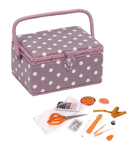[94-delige naaiset inbegrepen] - Inclusief doorzichtige plastic naaikit met ritssluiting die 2 x haak en bar, 6 x reserveknoppen, 40 x pinnen, naadripper, hobbyschaar, 150 cm "meetlint en nog veel meer, verkrijgbaar in 3 kleuren (willekeurig gekozen). [Afmetingen] Deze naaidoos is maat Medium. Buitenafmetingen (d/w/h) 18,5 x 25,5 x 14,5 cm. [Interne plastic lade] - Elke opbergdoos wordt geleverd met een verwijderbare doorzichtige plastic lade van acryl om kleine items netjes georganiseerd te houden, waardoor grotere items zoals kleermakersscharen eronder kunnen worden opgeborgen. [Blijf georganiseerd] - Ideale opbergoplossing voor het houden van spelden, naalden, schaar, knipsels, meetlint enz., netjes, netjes en vrij van verdwalen. Compleet met een elastische zak en pin kussen geïntegreerd in de binnenkant van het deksel. [Lichtgewicht en draagbaar] - Gemaakt van een lichtgewicht houten constructie bedekt met sterke, slijtvaste stof met een coördinerende zachte satijnen voering aan de binnenkant, magnetische sluiting met stoffen hoes en met stof/trim bedekt handvat.