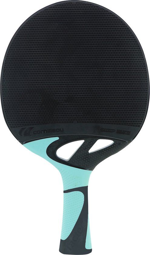 De Cornilleau Tacteo School outdoor tafeltennisbats hebben met hun nieuwe ontwerp een dynamische look gekregen die uitnodigt om lekker te gaan tafeltennissen. De Tacteo School outdoor tafeltennisbats uitgevoerd in zwart met lichtblauw zijn weer-en schokbestendig en het speeloppervlak kan niet loslaten van de bat. Dankzij een elastomeer bovenlaag met SKIN+ technologie en de gepatenteerde oppervlakte structuur hebben de Cornilleau Tacteo School tafeltennisbats een goede grip en controle voor een meesterlijk spel.