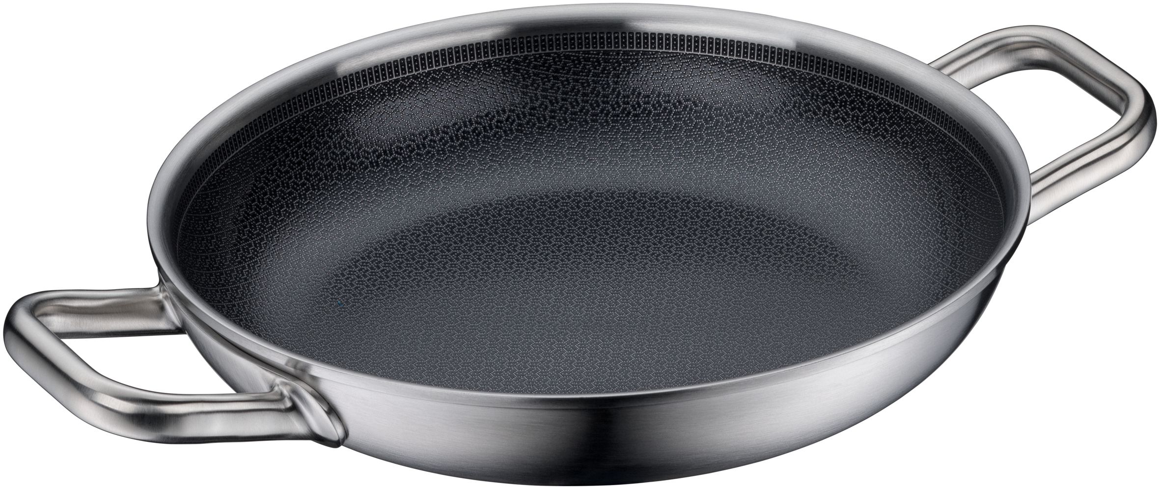 Met Ultimate Profi Resist geniet je van bakprestaties en een lange levensduur van roestvrij staal, plus het dagelijkse gemak van een anti-aanbaklaag. Het geheim: een honingraatstructuur, dat eten perfect dichtschroeit. De verhitting is snel en gelijkmatig en het ovenbestendige ontwerp biedt volledige veelzijdigheid. De pan is veilig te gebruiken met metalen keukengerei.
