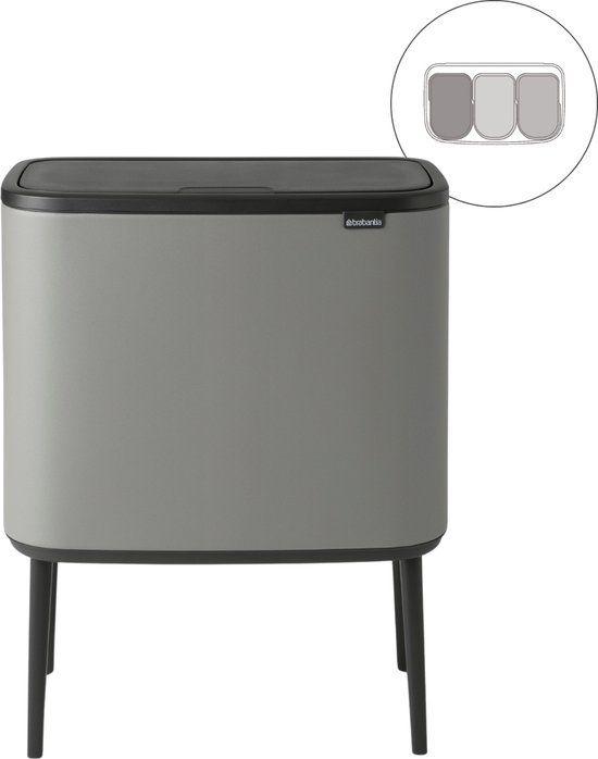 Brabantia Bo Touch Bin Afvalemmer - 3 x 11 liter - Mineral Concrete Grey