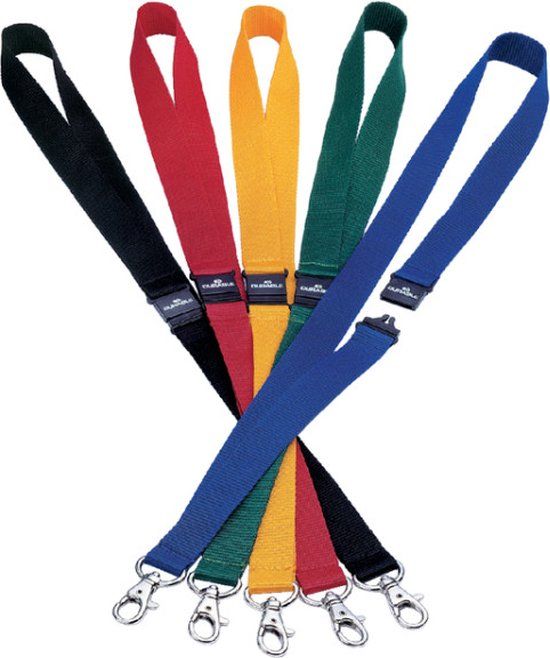 - Met veiligheidssluiting dat opent onder een te hoge trekbelasting\n- De clip maakt combinatie mogelijk met alle DURABLE congresspelden met clipuitsparing of speld\n- Lengte: 44 cm