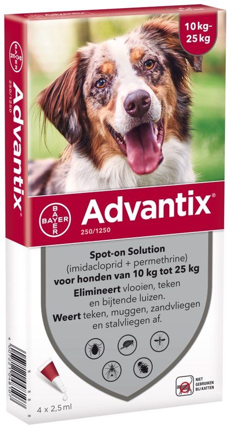 Bayer Advantix Vlooien & Teken Pipetten - Hond 10-25 kg - 4 stuks - Sprays tegen vlooien en teken
