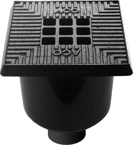 ACO Afvoerput buiten 20x20 cm Kunststof met Gietijzeren rooster - 75mm aansluiting - Vloerafvoer