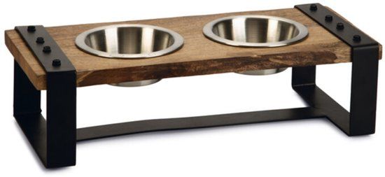 Bekijk productDesigned by Lotte Karinto Dinerset Hond - Hout/metaal - incl. 2 bakjes - 44x19x15cm - Voederbakken