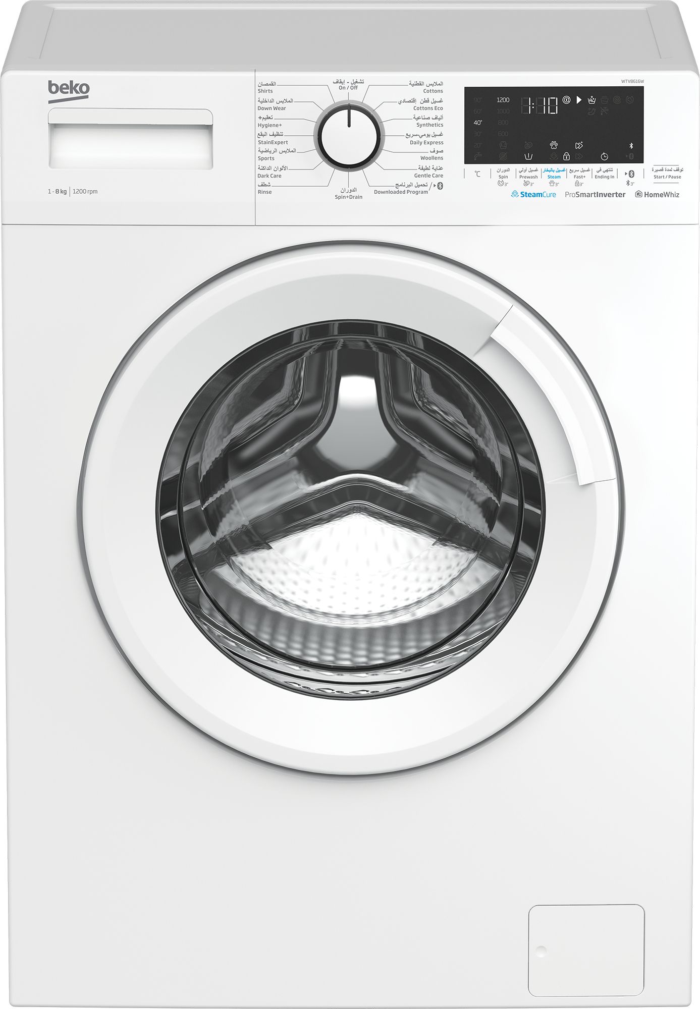 Beko-technologieën (kledingzorg): AquaWave,DrumClean,OptiSense,ProSmart™ Inverter Motor,StainExpert,SteamTherapy